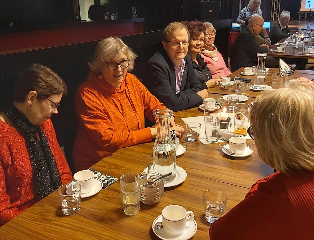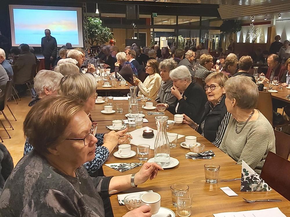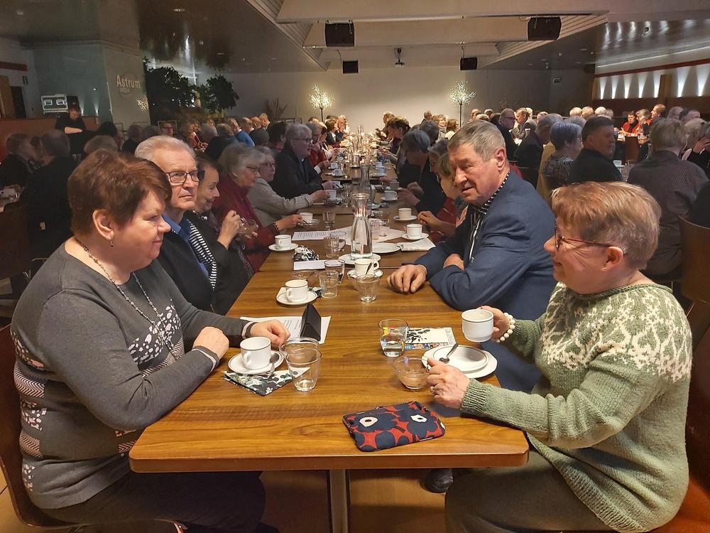 Tammikuun kuukausikokouksessa taidettiin tehdä osallistujaennätys, kun meitä oli paikalla 124 senioria. Aihekin oli tärkeä, seniorien tietoturva-asiat. Niistä kertoi meille piirin sihteeri ja koulutusvastaava Annele Silvennoinen. Ruoka oli jälleen maistuvaa ja Ilonpisaroiden kanssa laulettiin pari talvilaulua.