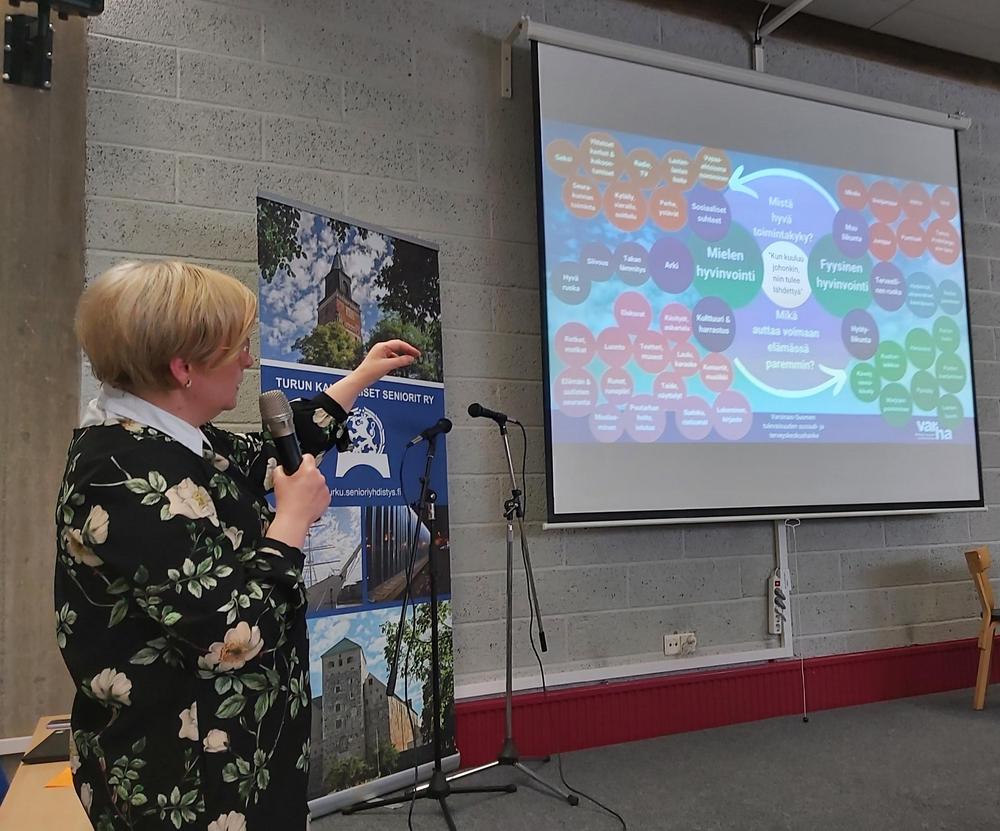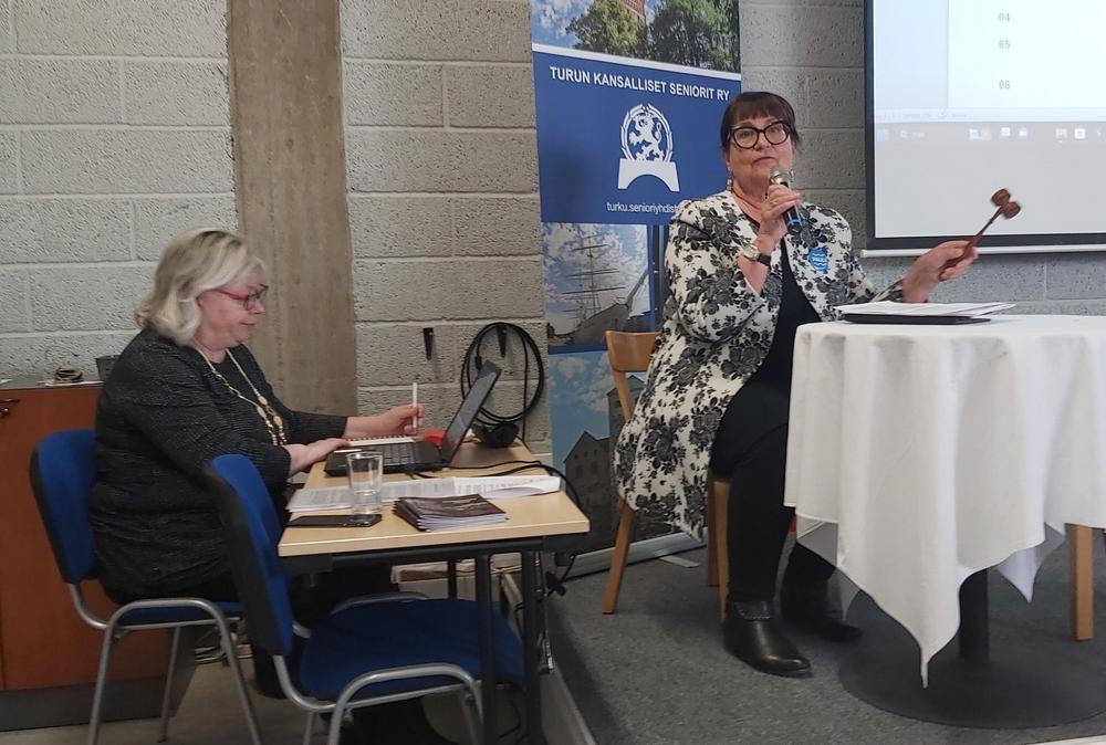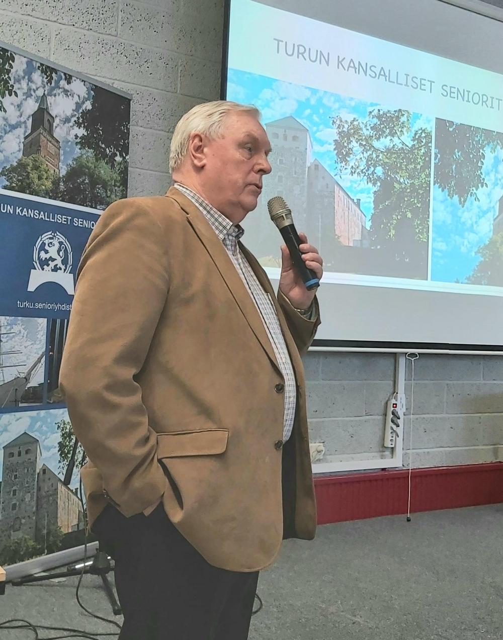 Turun yhdistys isännöi perjantaina 31.3.2023 Varsinais-Suomen kansallisen Senioripiirin kevätkokouksen Senioritalo Yrjänässä. Tilaisuuden avasi Turun yhdistyksen puheenohtaja Kari Kantalainen.