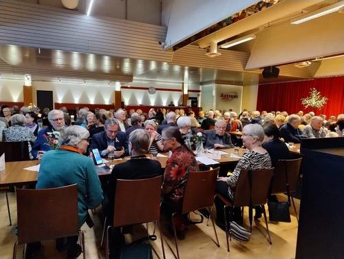 Psykologi Pirkko Lahden hyvät neuvot nyt käyttöön: Mielen huoltoon kuuluu mm. hyvä uni, mielekäs tekeminen, kuuluminen sopiviin "heimoihin", kuten Salon senioreihin, sosiaalinen kanssakäyminen, ilolla syöminen, päivittäisistä onnen hetkistä nauttiminen ja tietysti huumori. 160 senioria oli Astrum Areenalla näitä hyviä neuvoja kuulemassa.