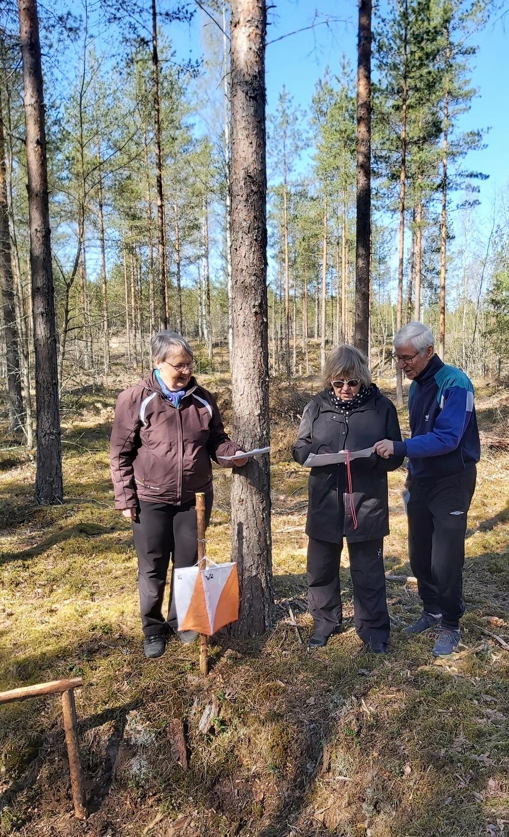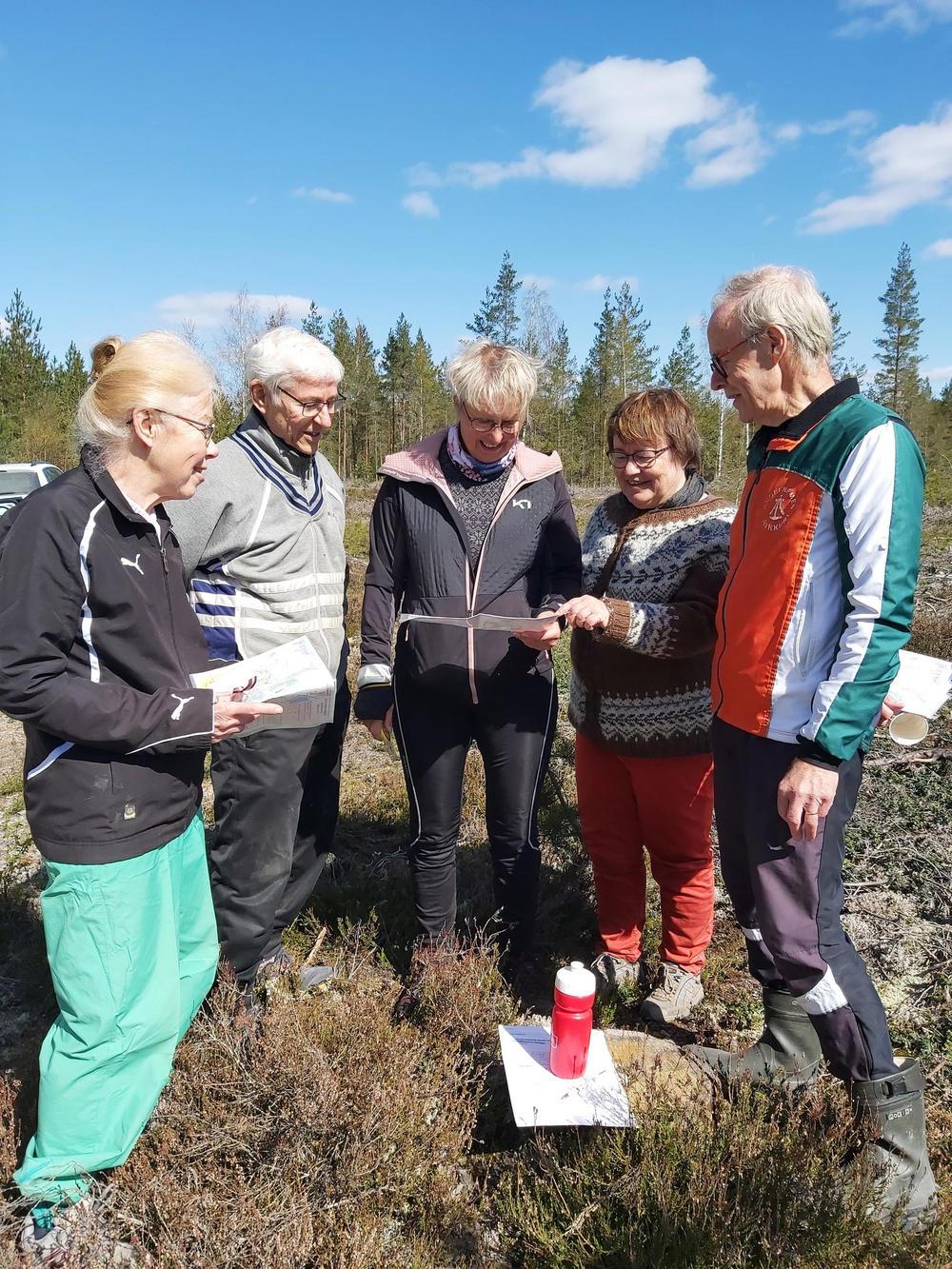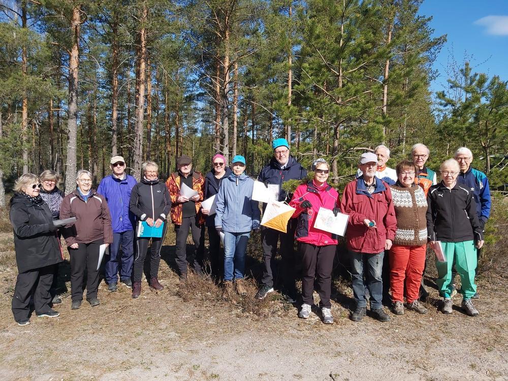 Iloiset Seniorit suunnistuksen saloihin tutustumassa Haannummen maastossa. Kaikki rastit löytyivät ja kukaan ei eksynyt. Kiitos Matti ja Angelniemen Ankkurin suunnnistajien. Sää suosi ja metsässä kävelyhän on parasta ulkoilua. Kuvat Irma ja Pirjo
