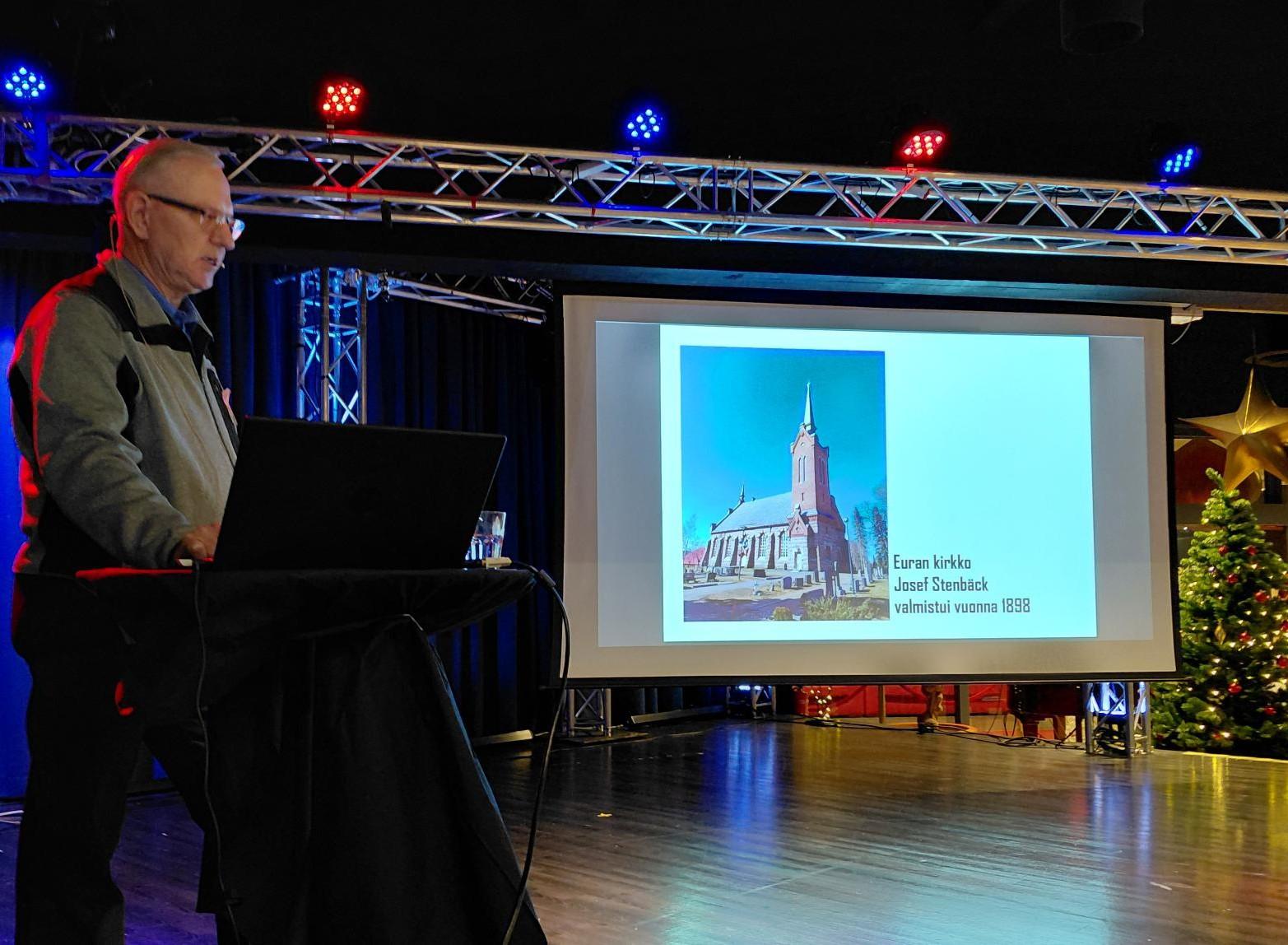 Tupa oli jälleen täynnä joulukuun tapaamisessamme. Mamas` tarjoili herkua monenmoista. Välillä laulettiin joululauluja. Kirkkokuvausten harrastaja Ilpo Määttänen kertoi kuvin ja sanoin muutamasta kymmenestä kuvaamastaan kirkosta. Loput 350 kirkkokuvaa jätettiin toiseen kertaan. Ulkona vihmoi vettä, vaan meillä oli lämmin ja mukava tunnelma.