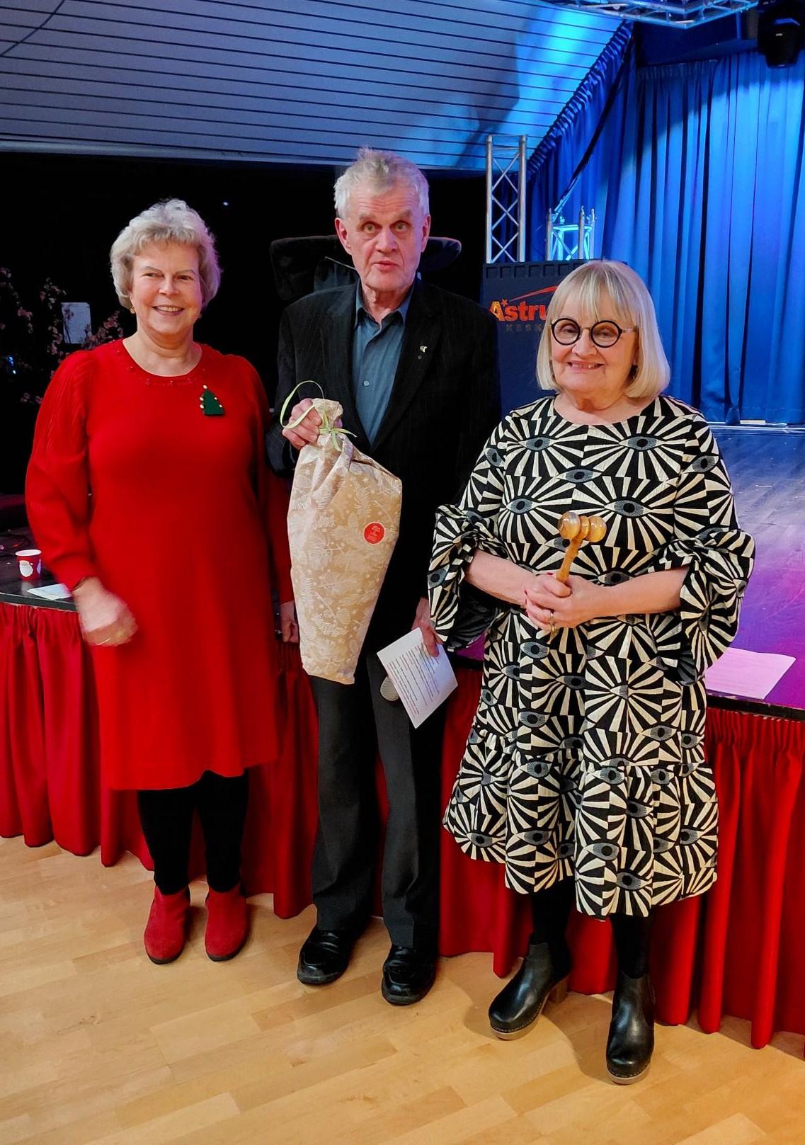 Ansioituneitakin muistettiin, kuten väistyvää V-S senioripiirin puheenhohtaja Arjaa kukkakimpulla. Aina maittavaa ruokaa loihtinutta Mamas`ìn Marjoa henkilökuntineen ja it-tukeamme Vesaa muistetimme suklaalla.
