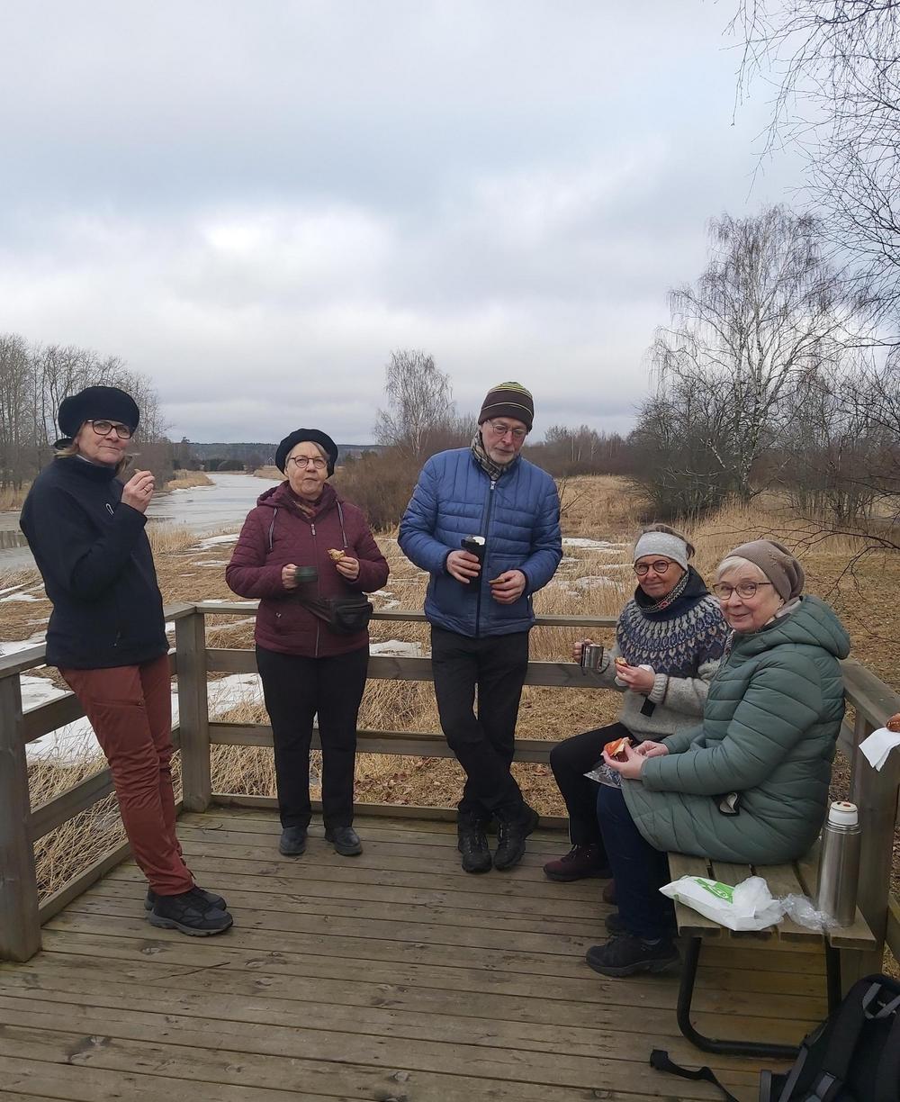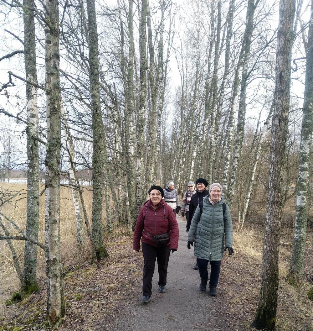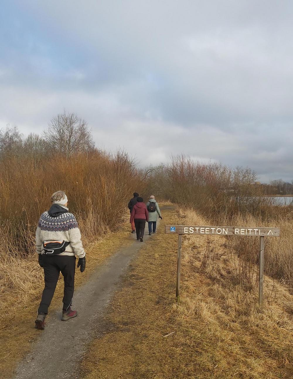 Teimme pienellä, reippaalla porukalla pe 28.2. hiihtopäivän sijasta ulkoiluretken omin eväin Halikonlahden esteettömällä reitillä. Sää oli tuuleton ja aurinkokin melkein paistoi.