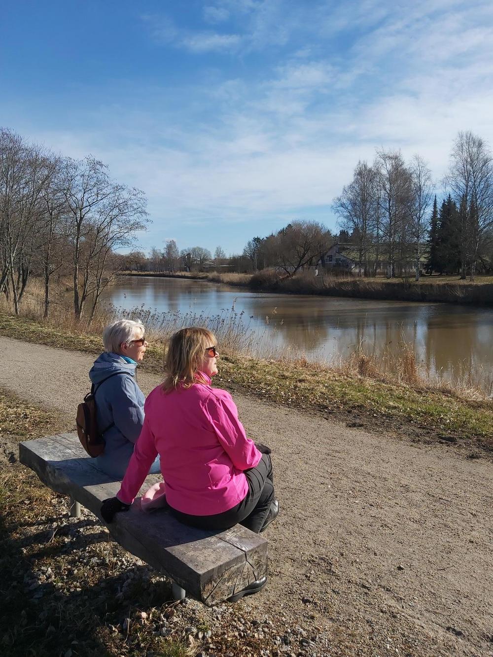 Yhteislähtökävelyllä ke 2.4.2025 kävelimme tarkistamaan uuden poliisitalon rakentamisen etenemisen ja katsastimme myös tulevia asuntomessutontteja. Mukana oli 6 reipasta kävelijää, kuvassa kävelyn "kuuma ryhmä" asuntomessutotteja tiiraiemassa.