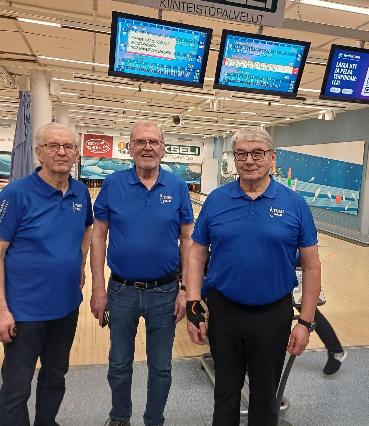 Turun kansallisten senioreitten 3.2.Kupoittaan keilailuhalissa järjestämässä kisassa oli kaikkiaan 47 osallistujaa, Salosta oli mukana 4 kolmijäsenistä joukkuetta. Ykkösjoukkueemme sijoittui kolmanneksi. Onnittelut kaikille!